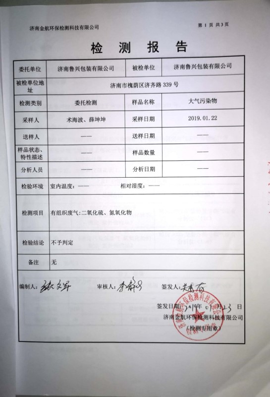 2019年1月環(huán)保檢測(cè)報(bào)告