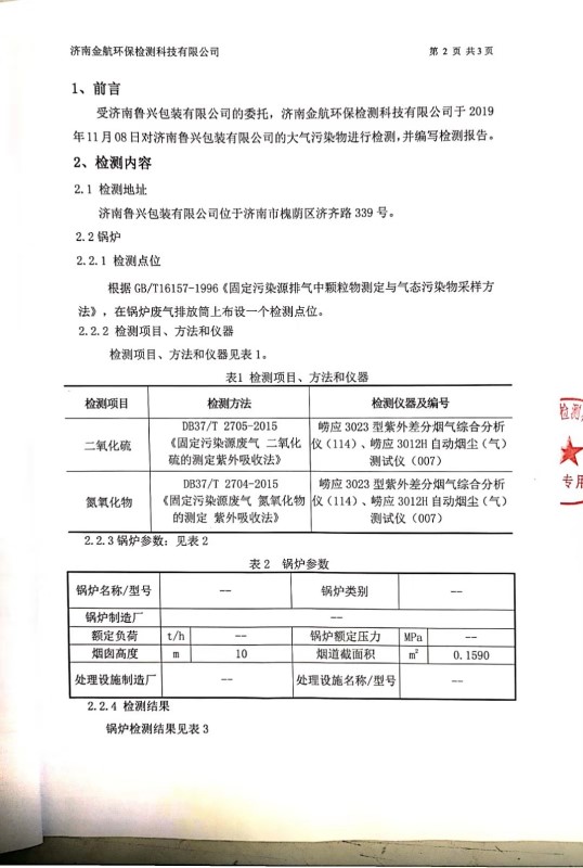 2019年11月環(huán)保檢測(cè)報(bào)告