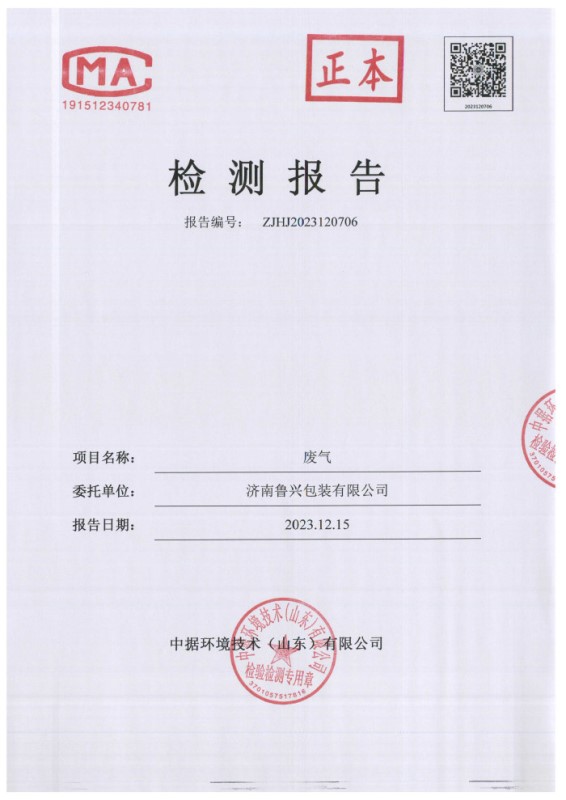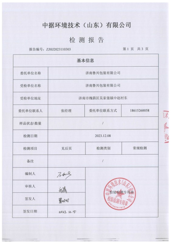 2024年1月魯興包裝檢測(cè)報(bào)告