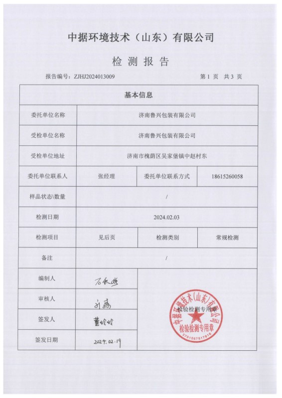 2024年1月魯興包裝檢測(cè)報(bào)告