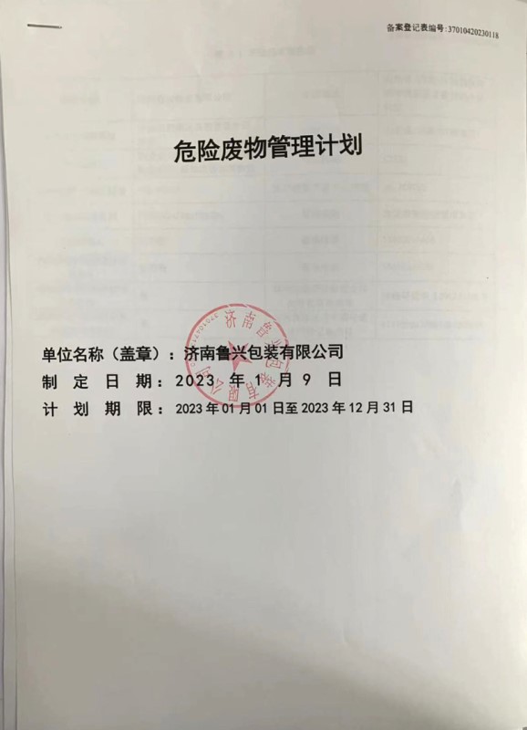 2023年危險(xiǎn)廢物管理計(jì)劃