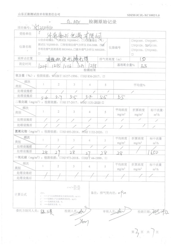 HJ2504110濟(jì)南魯興包裝有限公司記錄